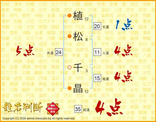 植松千晶さんの総運は35画の4点!