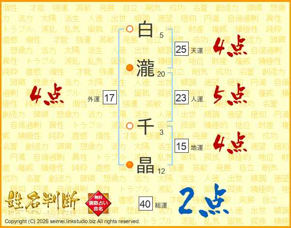 白瀧千晶さんの総運は40画の2点!