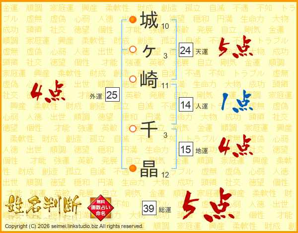 城ヶ崎千晶さんの総運は39画の5点!