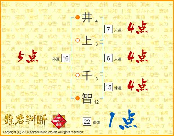 井上千智さんの天運は7画の4点!