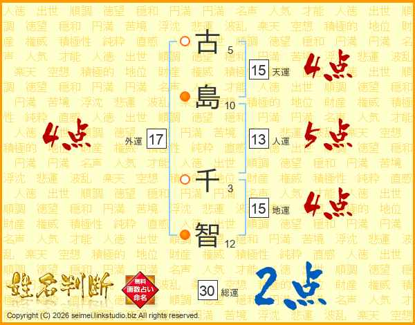 古島千智さんの総運は30画の2点!