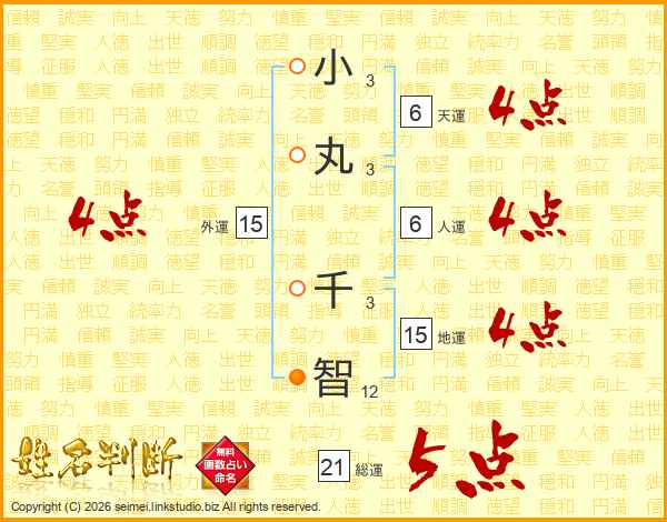 小丸千智さんの総運は21画の5点!