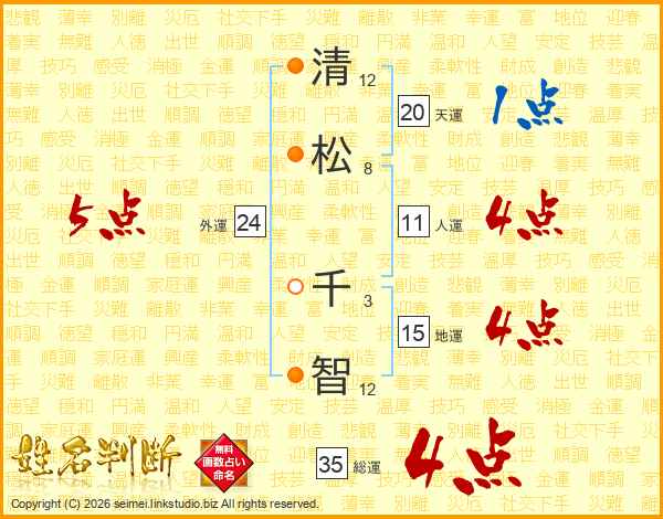 清(12画)松(8画) 千(3画)智(12画)