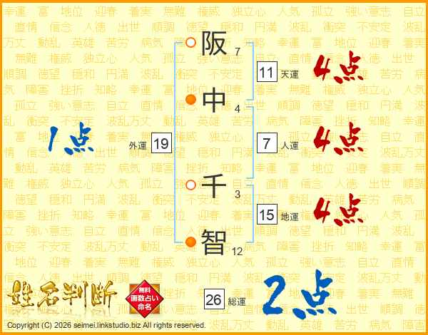 阪中千智さんの総運は26画の2点!