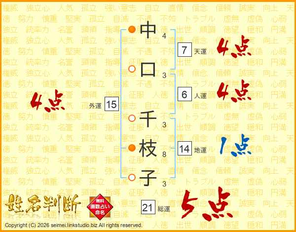 中(4画)口(3画) 千(3画)枝(8画)子(3画)