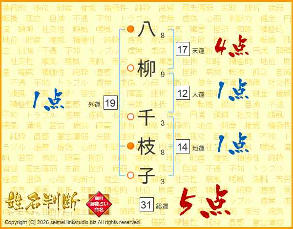 八柳千枝子さんの総運は31画の5点!