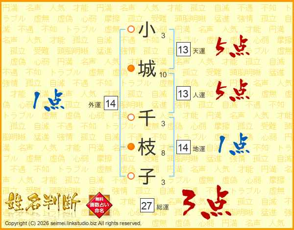 小(3画)城(10画) 千(3画)枝(8画)子(3画)