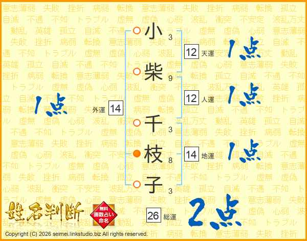 小柴千枝子さんの総運は26画の2点!
