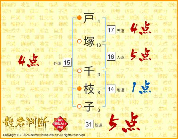 戸塚千枝子さんの総運は31画の5点!