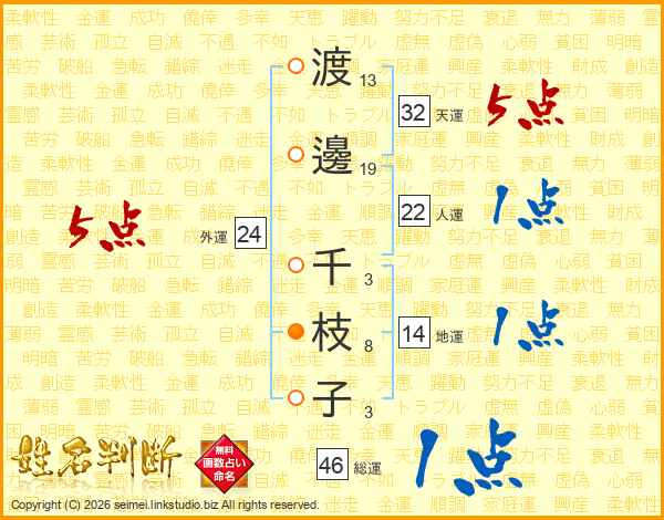 渡邊千枝子さんの外運は24画の5点!