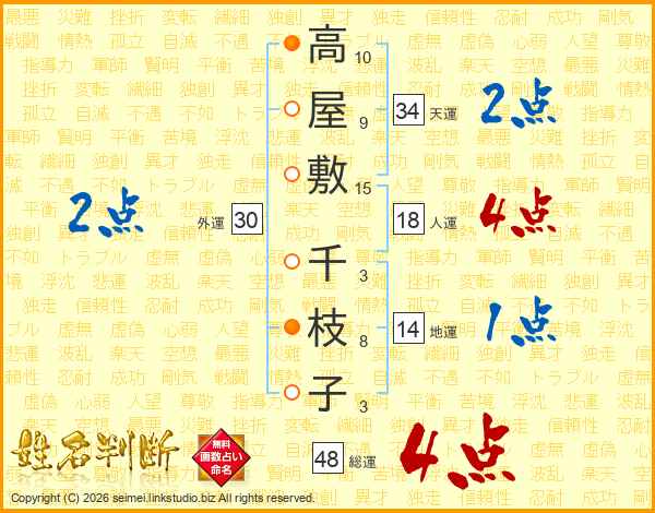 高屋敷千枝子さんの総運は48画の4点!