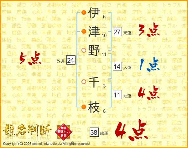 伊津野千枝さんの総運は38画の4点!