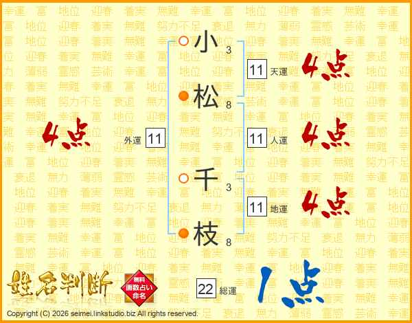 小松千枝さんの総運は22画の1点!
