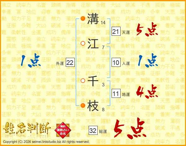 溝江千枝さんの総運は32画の5点!