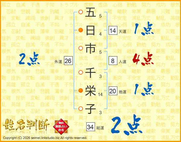 五日市千栄子さんの総運は34画の2点!