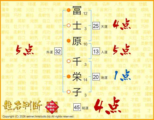 冨士原千栄子さんの総運は45画の4点!