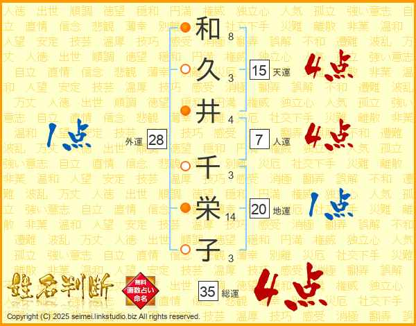 和(8画)久(3画)井(4画) 千(3画)栄(14画)子(3画)