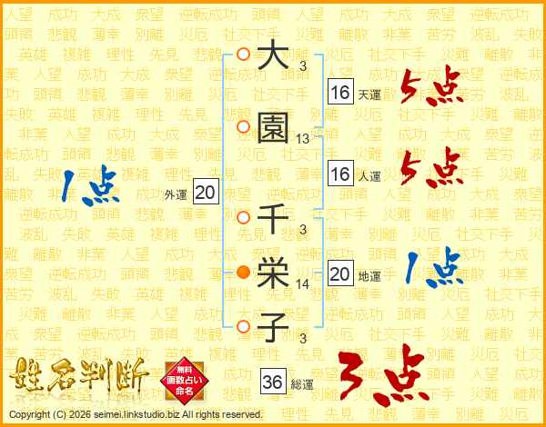 大園千栄子さんの総運は36画の3点!