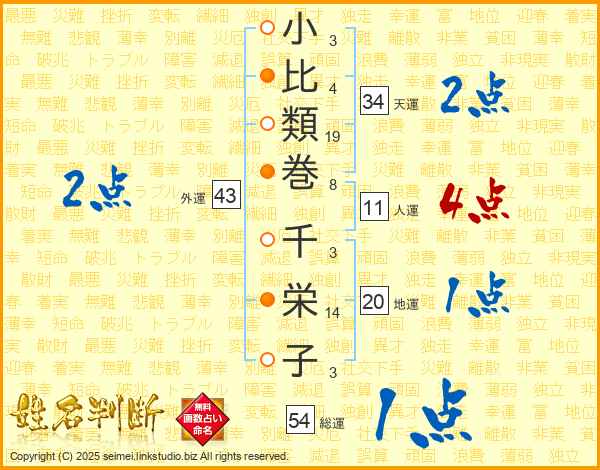 小比類巻千栄子さんの外運は43画の2点!