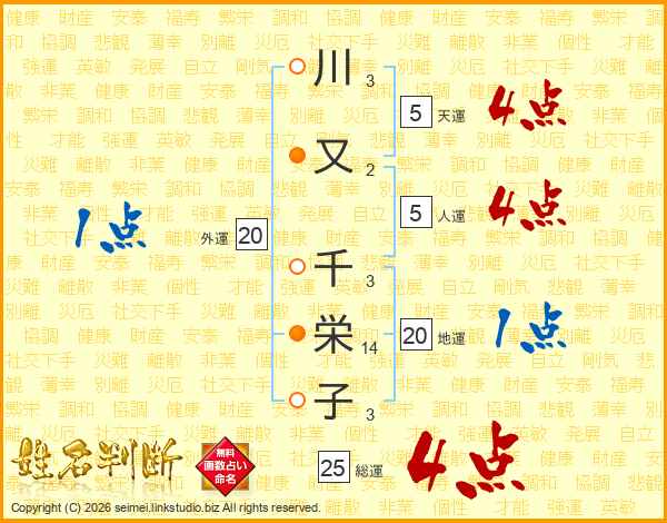 川又千栄子さんの総運は25画の4点!