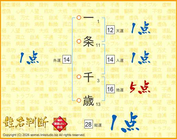 一条千歳さんの人運は14画の1点!