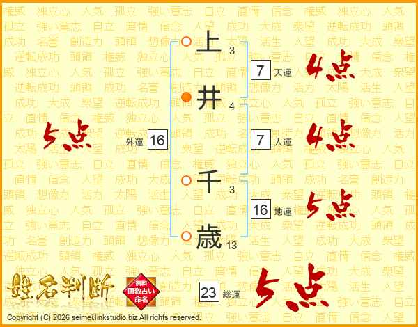 上井千歳さんの天運は7画の4点!