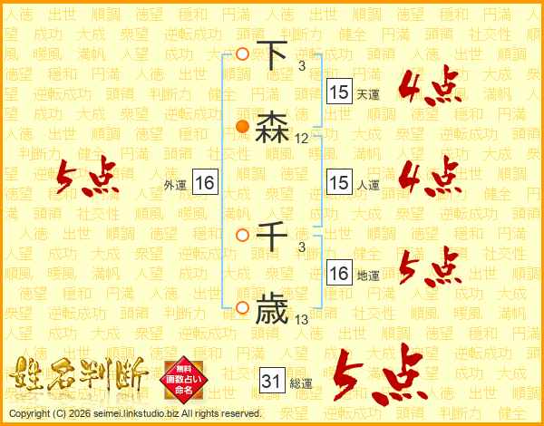 下森千歳さんの外運は16画の5点!