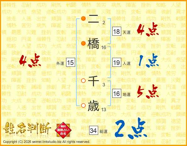 二橋千歳さんの天運は18画の4点!