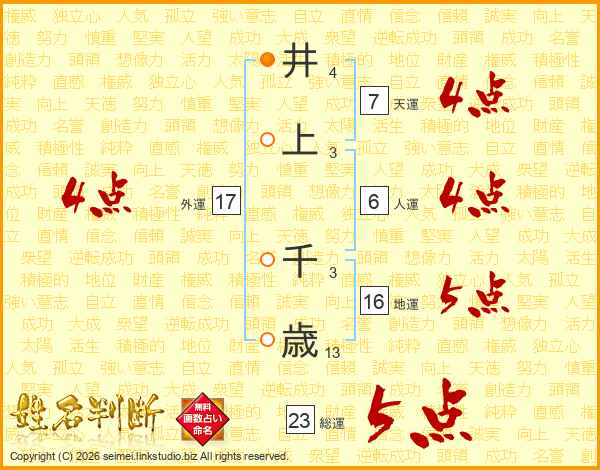 井上千歳さんの総運は23画の5点!