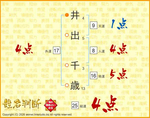 井出千歳さんの総運は25画の4点!