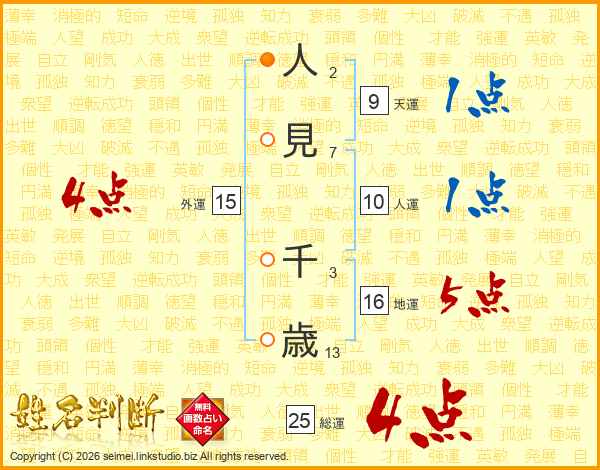 人見千歳さんの総運は25画の4点!