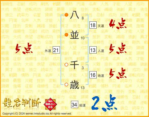 八並千歳さんの人運は13画の5点!