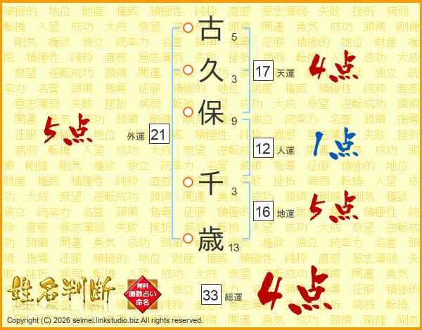 古久保千歳さんの総運は33画の4点!