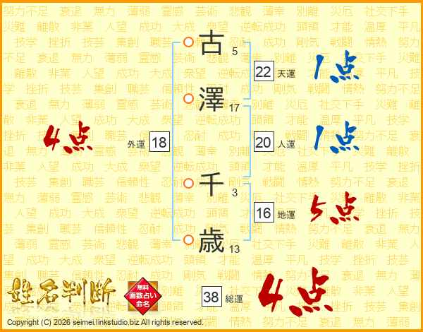 古澤千歳さんの総運は38画の4点!