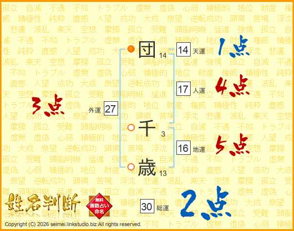 団千歳さんの総運は30画の2点!