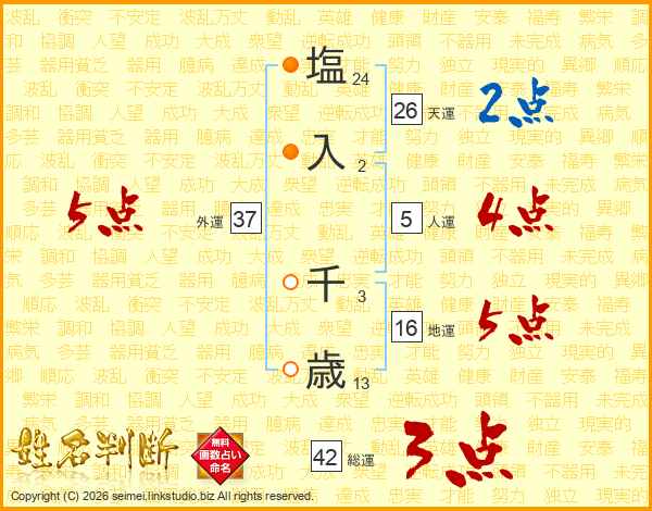 塩(24画)入(2画) 千(3画)歳(13画)