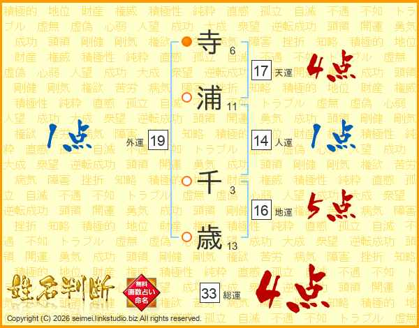 寺浦千歳さんの総運は33画の4点!