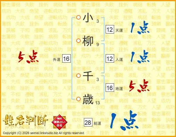 小柳千歳さんの外運は16画の5点!