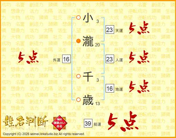 小(3画)瀧(20画) 千(3画)歳(13画)