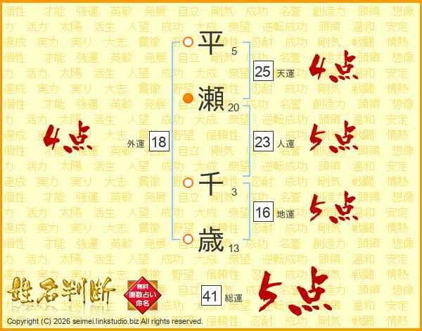 平瀬千歳さんの総運は41画の5点!