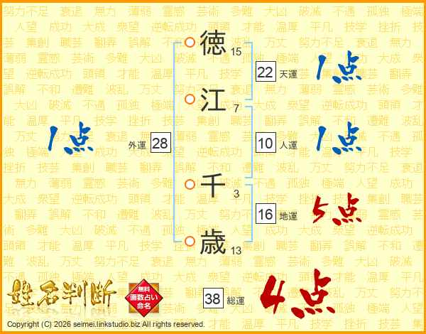 徳江千歳さんの総運は38画の4点!
