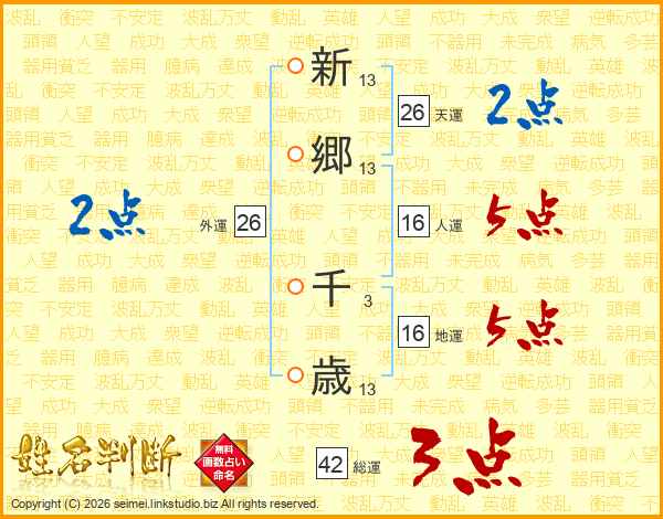 新郷千歳さんの天運は26画の2点!