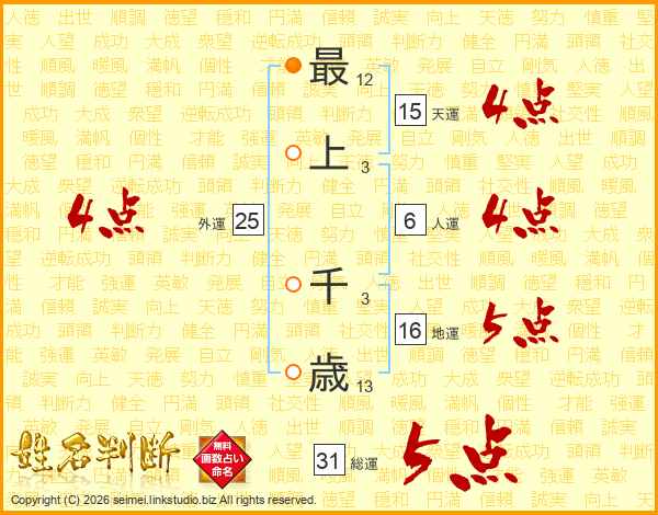 最上千歳さんの総運は31画の5点!