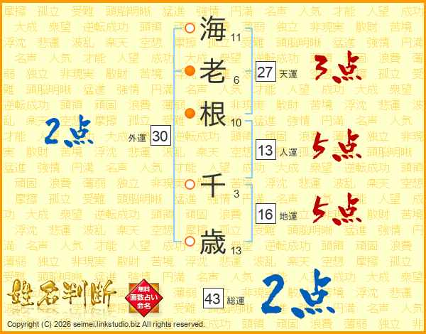 海老根千歳さんの総運は43画の2点!