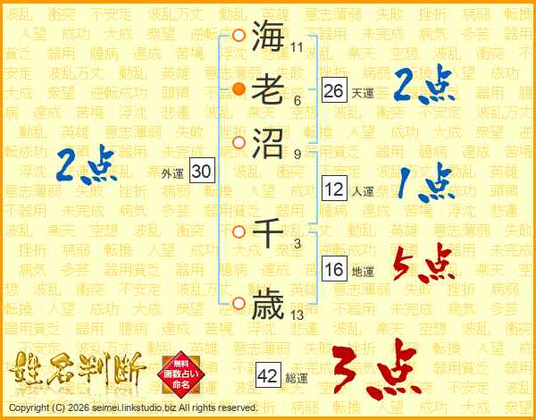 海老沼千歳さんの天運は26画の2点!