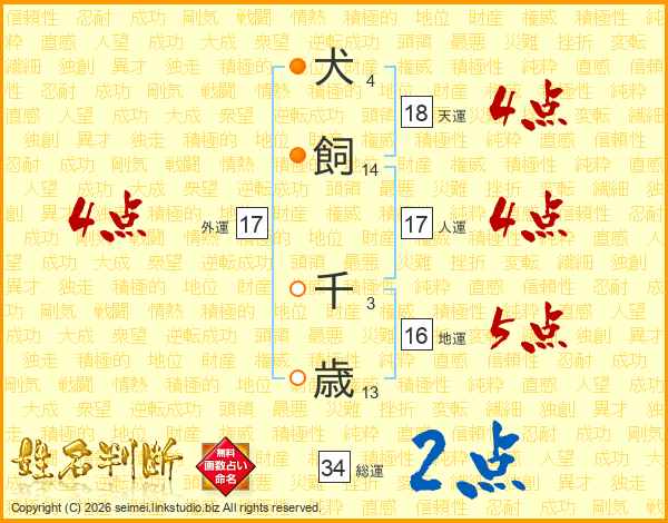 犬飼千歳さんの外運は17画の4点!