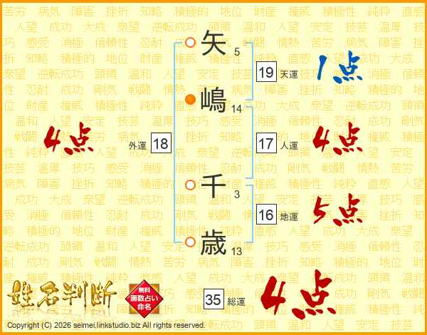 矢嶋千歳さんの総運は35画の4点!