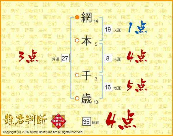 網本千歳さんの総運は35画の4点!