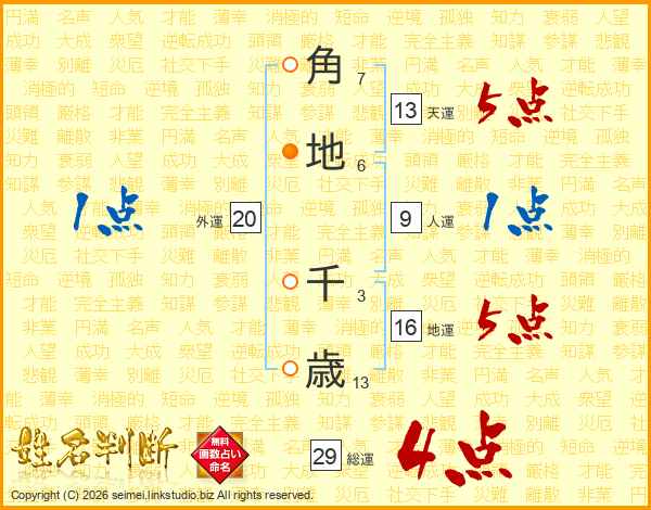 角地千歳さんの総運は29画の4点!