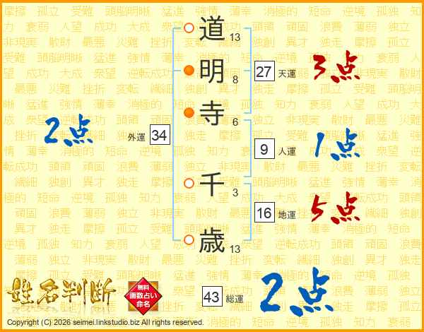 道明寺千歳さんの総運は43画の2点!